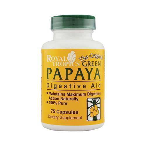 Enjoy Royal Tropics The Original Green Papaya Digestive Aid - 75 Capsules every day at these amazing prices! Royal Tropics The Original Green Papaya Digestive Aid Description: Digestive Aid--Maintains maximum digestive action naturally--100% Pure This powder is made from the mature green papaya which contains the highest sources of papain...