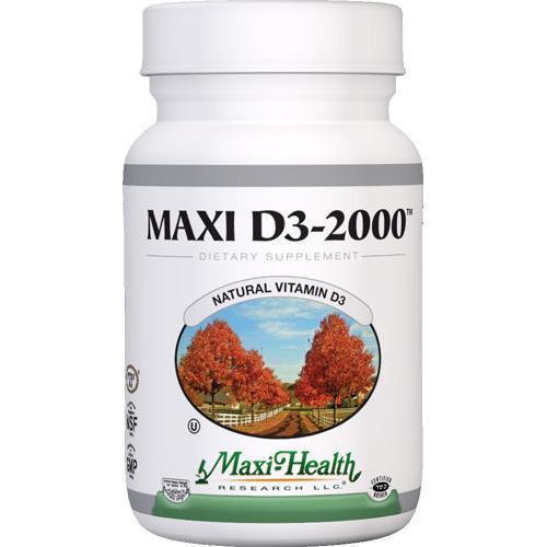 Enjoy Maxi Health Kosher Vitamins Maxi D3 2000 - 2000 IU - 90 Tablets every day at these amazing prices! Vitamin D3 was proven effective in bone mass maintenance and fracture prevention. Gluten Free These statements have not been evaluated by the Food and Drug Administration. This product is not intended to diagnose, treat, cure, or prevent any diseases. Product characteristics include: Amount Per Serving % Daily Value Vitamin D3 (as cholecalciferol) 2000 IU 500% Daily Value based on 2,000 calorie per day diet. Other Ingredients: Dicalcium phosphate, microcrystalline cellulose, Enzymax (calcium carbonate, bromelain, papain, lipase, amylase, protease, silica), stearic acid, magnesium stearate, croscarmellose sodium, silicon dioxide, aqueous film coating. This product contains no soy, wheat, gluten, yeast, salt, milk, artificial flavors, colorings or preservatives. Enzymax, a vital digestive enzyme complex, is a registered trademark of Maxi Health Research, LLC. Store tightly closed in a cool, dry place. Keep out of reach of children. Available packaged in the following units: 90 or 180 Tablets These statements have not been evaluated by the Food and Drug Administration. This product is not intended to diagnose, treat, cure, or prevent any diseases. (Please note: Description is informational only. Always read the product label before use and check with your health professional before using this product)