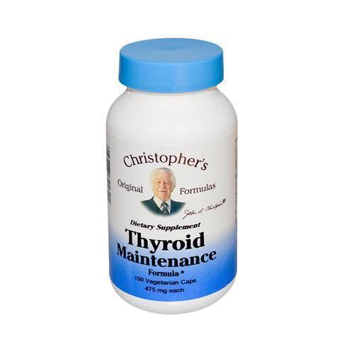 Enjoy Dr. Christopher's Thyroid Maintenance - 485 mg - 100 Vegetarian Capsules every day at these amazing prices! Christopher's Thyroid Maintenance Description: Dr. Christopher's Original Thyroid Maintenance Formula This is an herbal aid for the thyroid and assisting glandular systems. These herbs assist in controlling metabolism and give herbal feeding to the thyroid glands to help them do their job more efficiently. This is a very fine glandular aid. For additional help with the glandular systems as a whole, use Mullein and Lobelia, which is a specific for malfunctioning glands. All encapsulated products are in a pure 100% vegetable based capsule. Free Of Added fillers and chemicals. Disclaimer These statements have not been evaluated by the FDA. These products are not intended to diagnose, treat, cure, or prevent any disease. (Please note: Description is informational only. Always read the product label before use and check with your health professional before using this product)