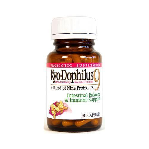 Enjoy Kyo-Dophilus 9 - 180 Caps every day at these amazing prices! Kyo-Dophilus 9 boasts nine friendly human strains of bacteria to care for all areas of intestinal function and is suitable for daily use. This unmatched formulation includes specially selected strains of Lactobacillus acidophilus, L. rhamnosus, L. gasseri, Bifidobacterium longum strain B., B. longum strain M., B. bifidum., B. infantis, B. breve, and B. lactis. Listen to your gut feeling! Supplementing with these strains provides good company to the flora already there, and may help to calm the digestive system when antibiotics, travel, diet, pathogens, or any stress disrupt the normal flora causing various upsets. Refrigeration is not necessary, making it the most convenient probiotic on the market. Kyo-Dophilus 9 is also heat stable and its potency is guaranteed for 3 years. Supporting well-being for all ages! Product characteristics include: L. acidophilus, L. rhamnosus, L. gasseri, B. longum strain M and B. longum strain B, B. bifidum, B. infantis, B. breve and B. lactis 3.0 billion live cells Prior to the expiration date Other Ingredients: Gelatin, Starch (potato, tapioca and corn) and Silica. Contains trace amounts of fish. (Please note: Description is informational only. Always read the product label before use and check with your health professional before using this product)